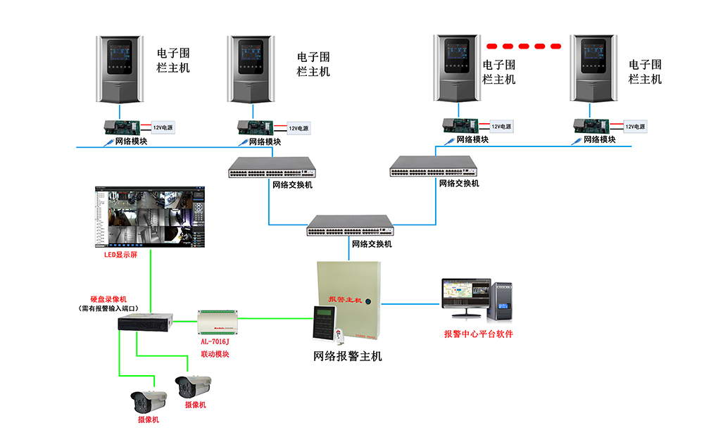 电子围栏网络主机——IP网络电子围栏施工布线示意图